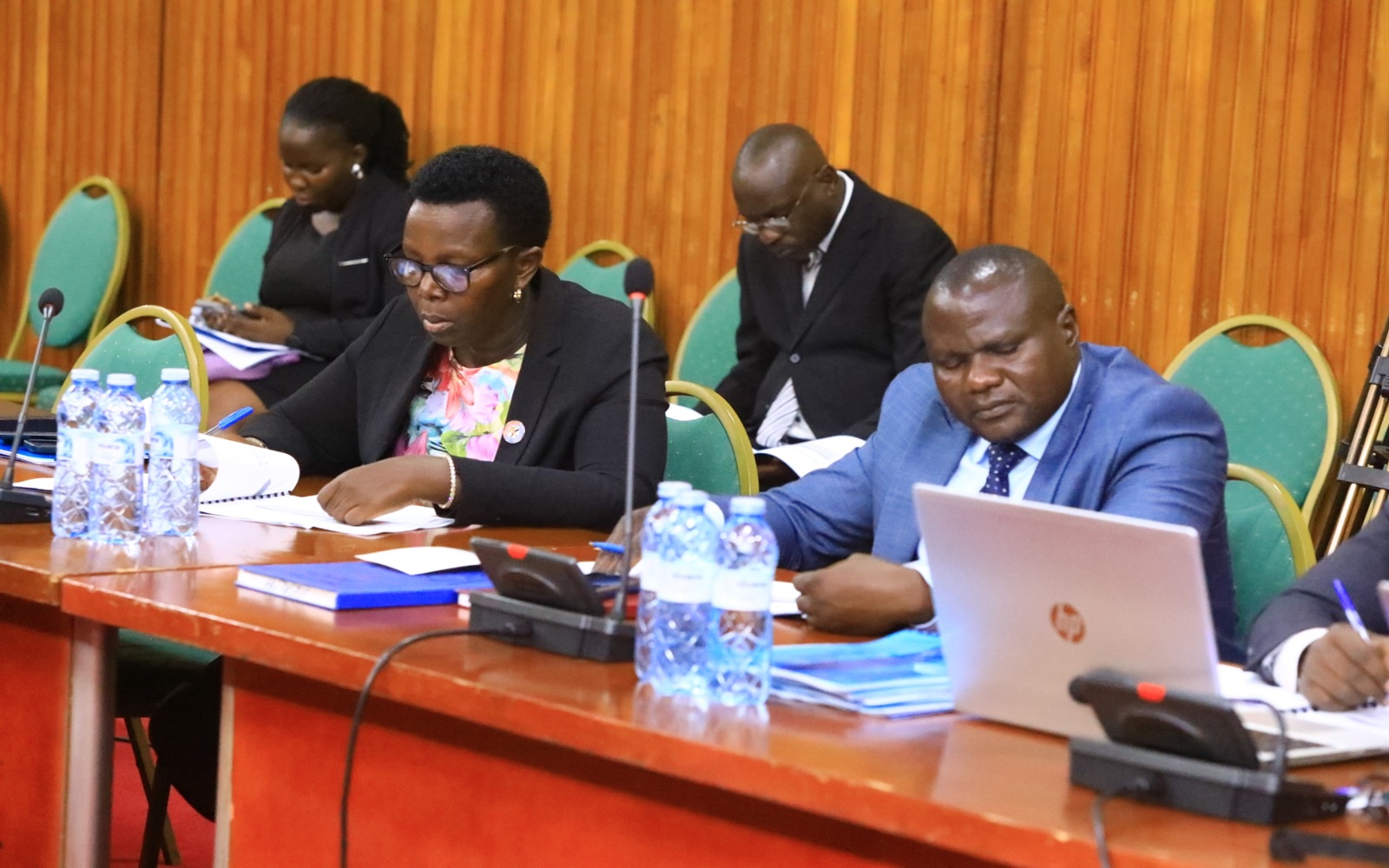 Dr Nakku (C) appearing before the committee chaired by Dr Ruyonga (L)
